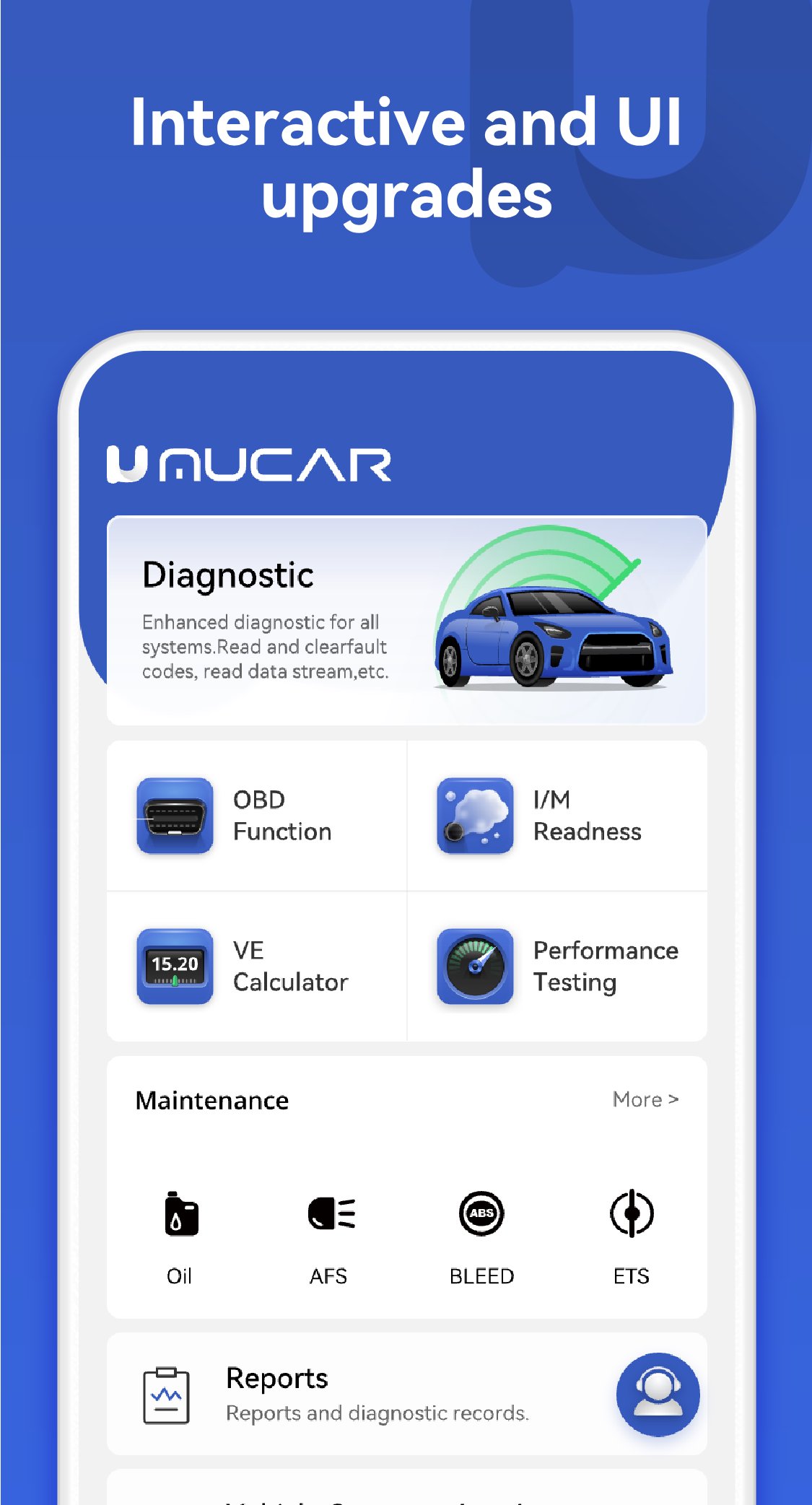 O MUCAR também é um dispositivo de diagnóstico inteligente. Conectando-se a um smartphone via Bluetooth, o MUCAR é controlado para funcionar por um aplicativo.