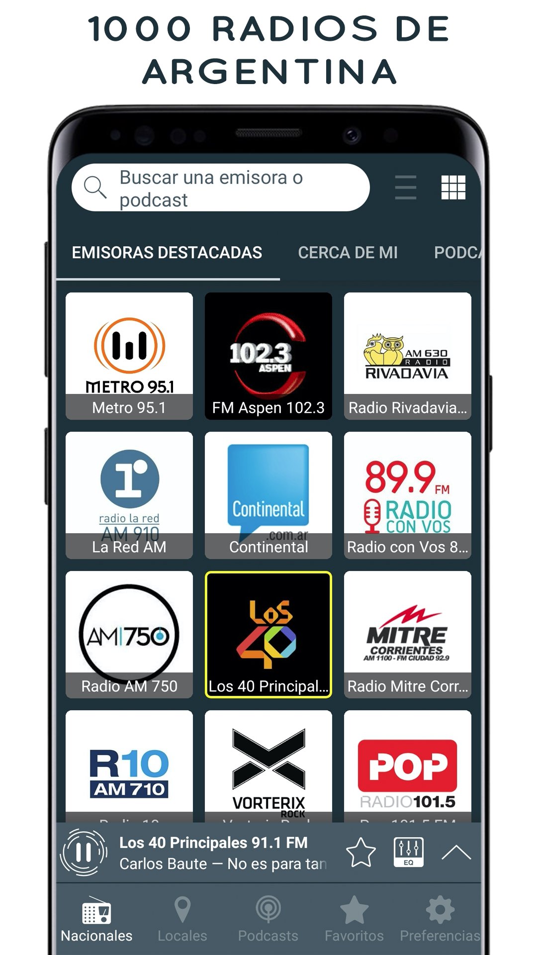 With Radio Argentina you can listen to the best internet radio stations and follow your favorite shows and podcasts for free. You can choose amongst sports, news, music, comedy and more.