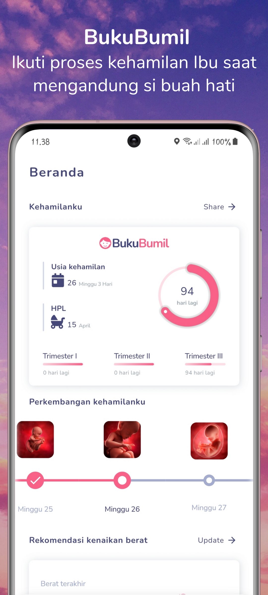 • Ketahui perkembangan janin dan tubuh Ibu