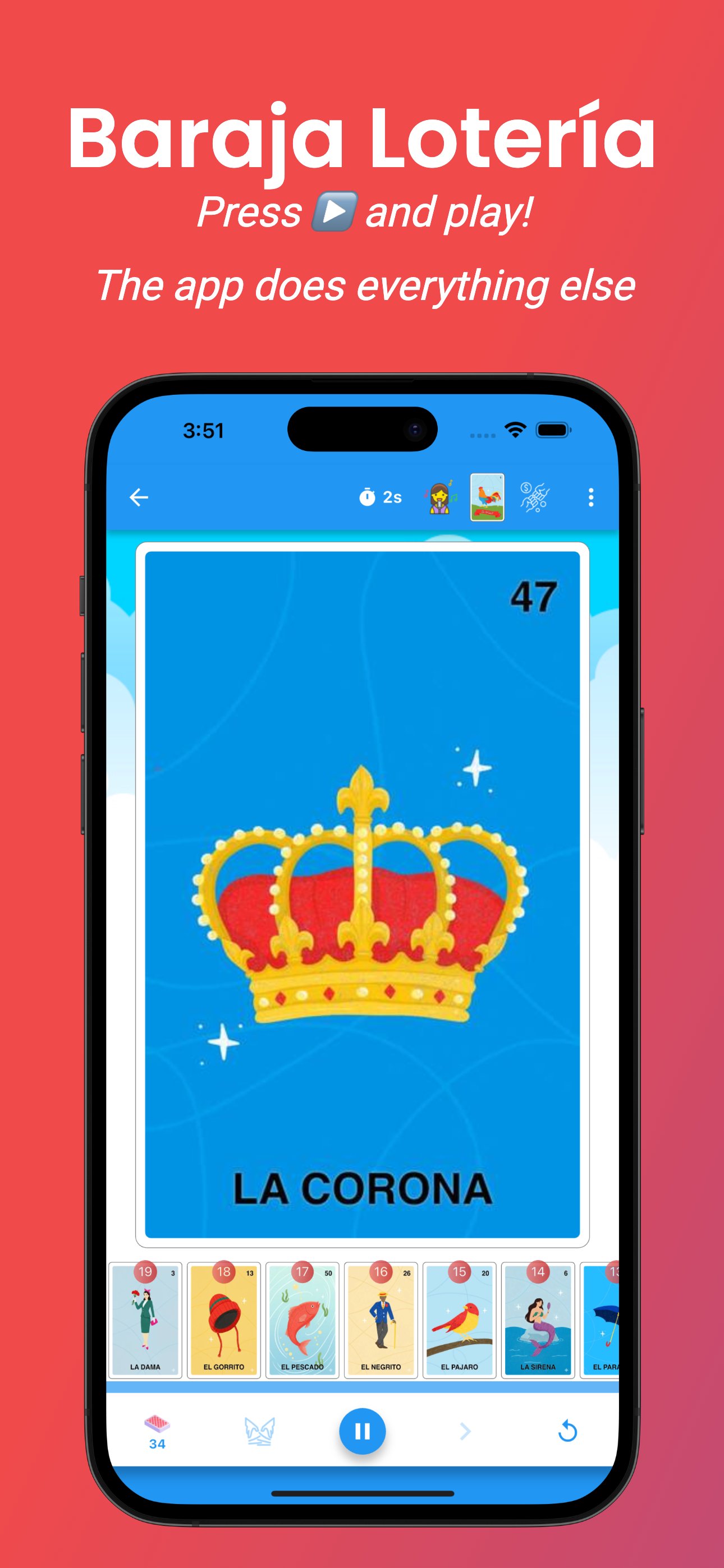 Just connect your phone to a speaker and let the app call the cards for you, just like in a traditional Lotería game.