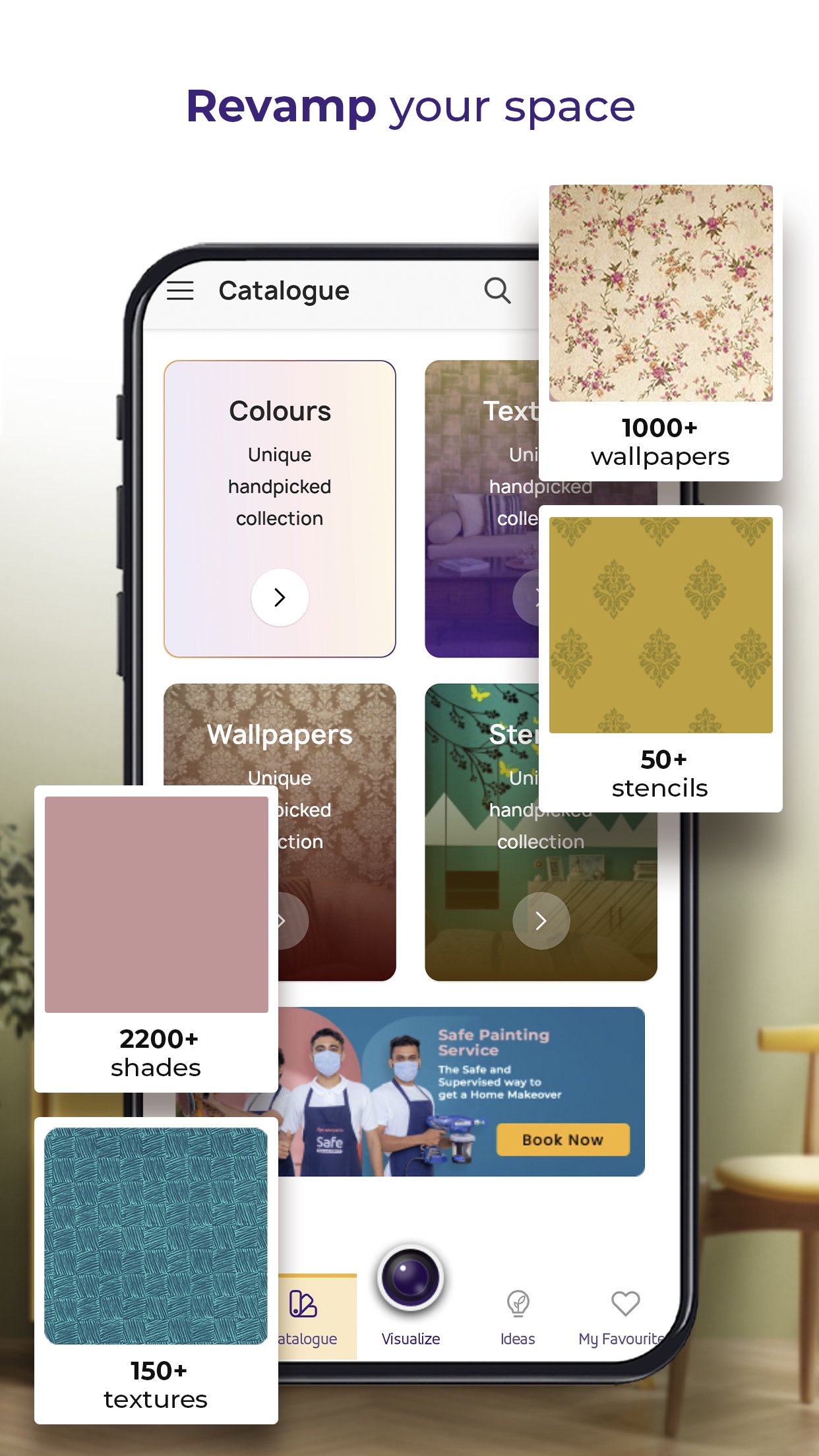 Reimagining your home is fun and easy with the ‘Colour with Asian Paints’ colour visualizer & wall painting app. Try out our entire range of wall colours, wall textures & wallpaper designs at the click of a button. Simply take a photo of the plain wall you want to paint, after which our extensive range of wall colour combinations are open for your picking. You can also choose a layout from the gallery to sample our wall colours and textures onto it. Now with just few clicks, you can re-envision your home or your room colour with different house painting ideas using this app.